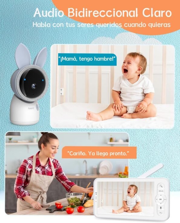 ARENTI Monitor Bebé con Dos Camaras Camara para Bebe 4MP 5″ HD 2.4G&5G WiFi Monitor de Video con Visión Nocturna por Infrarrojos, Luz Nocturna, Audio Bidireccional, Detección de Llanto y Movimiento