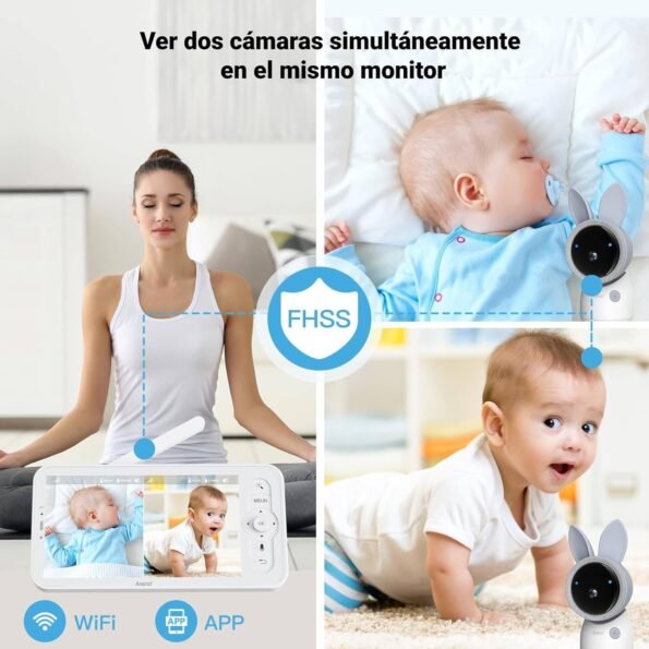 🐰Pantalla dividida con doble cámara: La unidad de pantalla admite dos cámaras de 4 megapíxeles para monitoreo simultáneo y cuenta con función de pantalla dividida. Puede monitorear a dos bebés simultáneamente o colocar las dos cámaras en la habitación del bebé y en la sala de estar, respectivamente, eliminando la molestia de tener que cambiar la cámara del dormitorio a otras habitaciones.