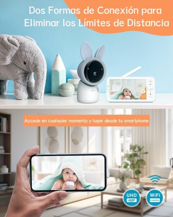 🐰Wi-Fi de Doble Banda (2.4G y 5G): Diga adiós a los problemas de conexión con Wi-Fi 5G. A diferencia de otros monitores que solo admiten Wi-Fi de 2.4G, este monitor inteligente para bebés Arenti está diseñado con Wi-Fi de doble banda de 5GHz y 2.4GHz, ofreciendo una respuesta más rápida y una vida más conveniente. Consejo: Actualice la aplicación Arenti a la última versión para conectarse a la red 5G.