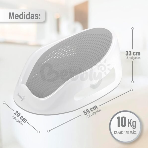 Bebbly Soporte para Bañera de Bebé Antideslizante con Base Ergonómica Reclinada para Recién Nacido Ideal para Baño Seguro y Cómodo en Lavabo o Tina 33 x 55 x 22 cm Bebés 0 a 6 Meses