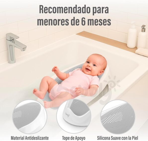 👶 Ideal para recién nacidos: Brinda soporte seguro desde los primeros baños. Diseñado para bebés de 0 a 6 meses.