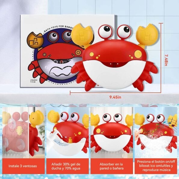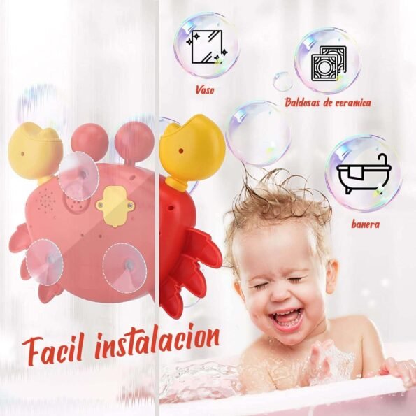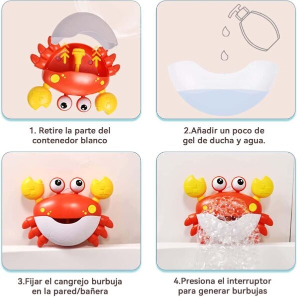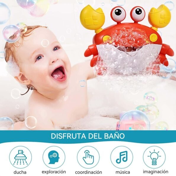 [...]Me gusta como logra captar la atención del pequeñito de mi casa, lo entretiene mucho y lo motiva a quererse bañar, siempre logra sacarle sonrisas y baila y las burbujas son su más grande emoción! para mí es un juguete seguro pues las compresas que sostiene el cangrejo se mantienen muy fijas en la pared a pesar de que le cae el agua y jabón, no se resbala, la música suena bien a pesar de que ya hace un buen rato que hice la compra y las burbujas salen de forma continua. Si cumple mis espectativas.