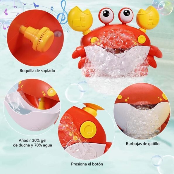 【Divertidos Juguetes para el Baño】No se necesita una solución de burbujas específica, sólo el gel de baño habitual y agua, el lindo cangrejo escupirá innumerables burbujas, con 12 música, para que los niños puedan disfrutar de la diversión del baño y pasar un buen rato de baño.