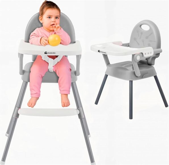 Bluelander Silla para Bebe, Silla Desmontable Patas Ajustable de Altura, Cinturón De Seguridad, Periquera Para Bebe con Charola Desmontable, Silla Alta Ergonómica Para Bebe, Segura y Cómoda (Gris)