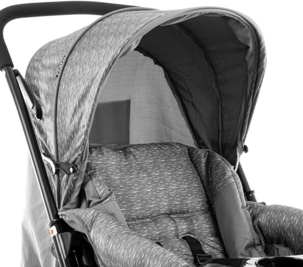 Asiento extra cómodo, capota rectáxtil y 3 alturas de ajuste en el cinturón