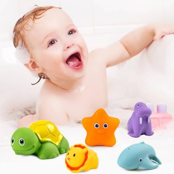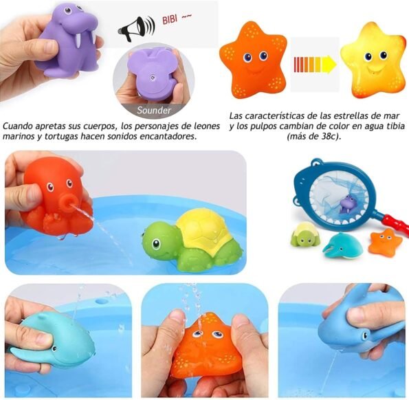 Los animales pequeños cambian de color a altas temperaturas del agua, los juguetes que emiten luz pueden hacer que se concentren más y se sumerjan mejor en la diversión de la hora del baño.