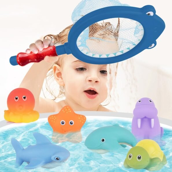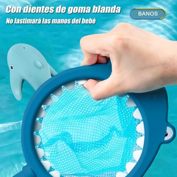 Este juego es adecuado tanto para el baño como para la piscina, los niños se divertirán capturando peces brillantes y otras criaturas marinas mientras mejoran sus conocimientos sobre la vida marina.
