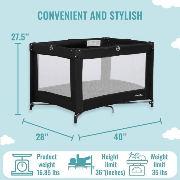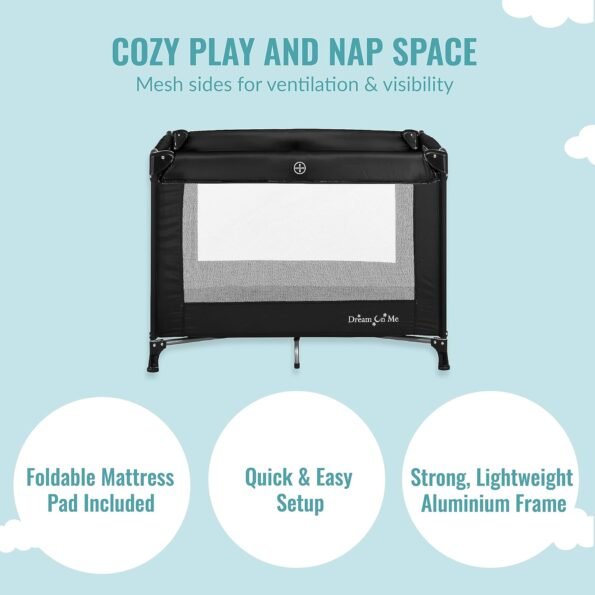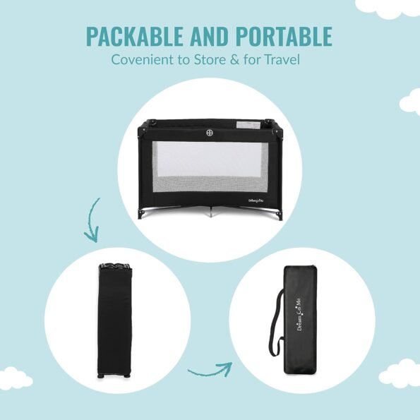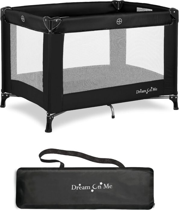 Dream On Me – Patio de juegos portátil Nest con bolsa de transporte y correa para el hombro, color negro