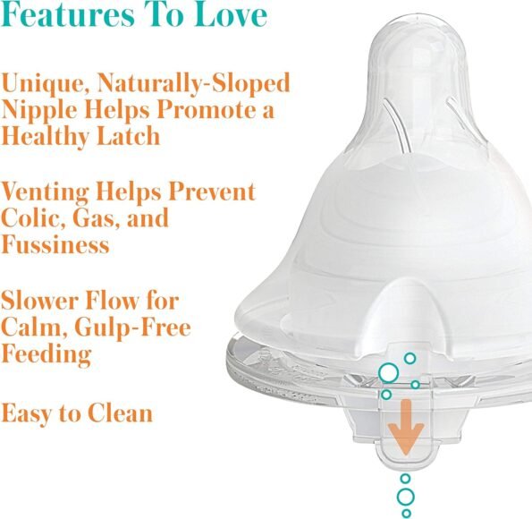 PREMIUM VENTING – Evenflo Feeding’s patented Proflo Venting Technology was developed to ensure milk bubbles stay in the bottle and not in your baby’s tummy. This gentle, 1-piece venting system helps significantly reduce the potential for colic, reflux, gas, and fussiness, keeping your baby comfortable even after they are finished eating.