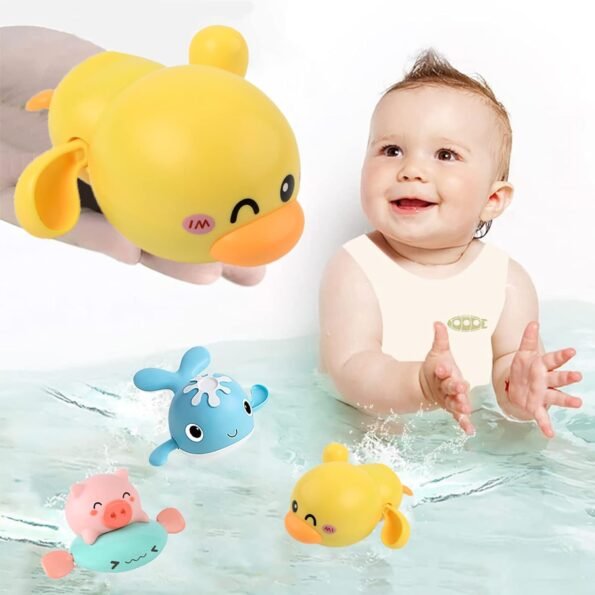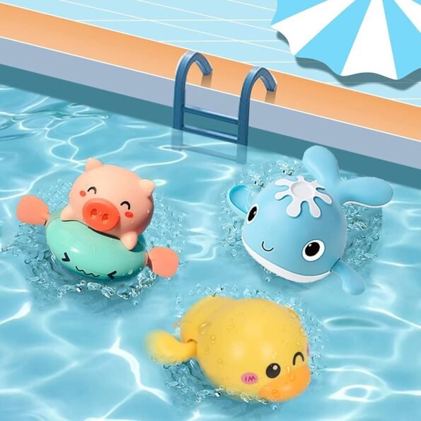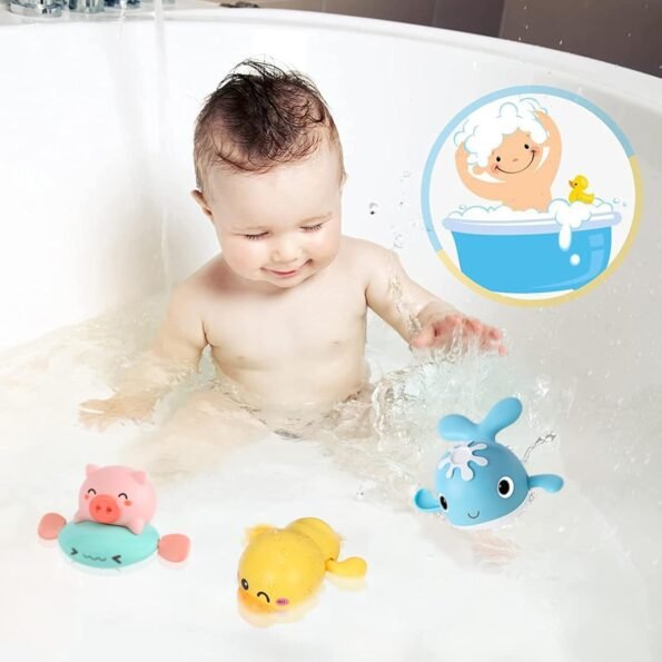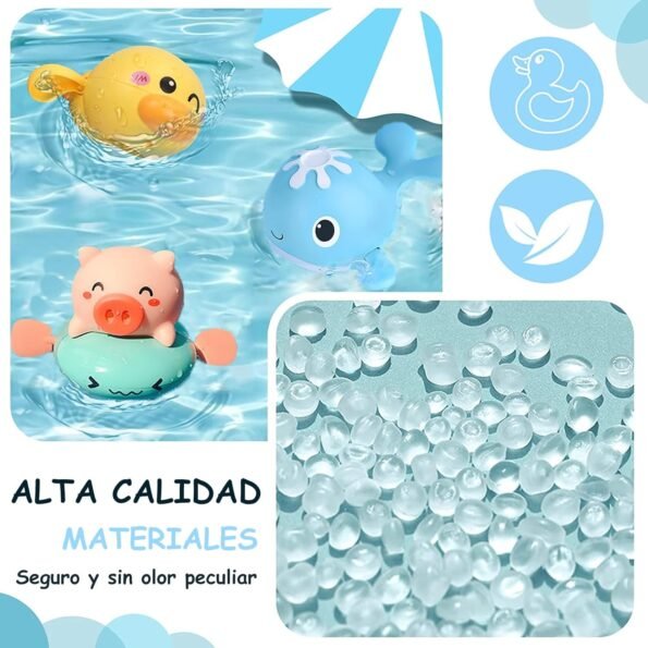 【Úselo con Confianza】: El juguete de baño para bebés funciona con un giro manual. Pueden nadar en el agua, no necesitan pilas y el borde suave no dañará las manos de su bebé.