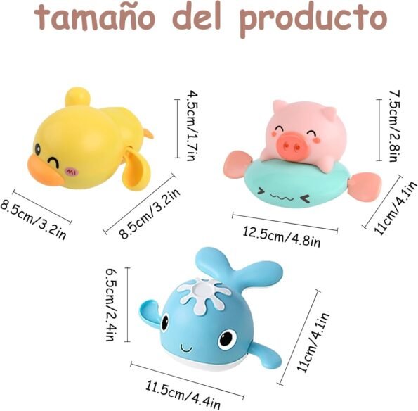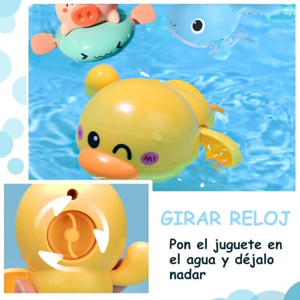 【Dar Cuerda y Soltar】: Da cuerda a los juguetes de baño, luego colócalos en el agua para ver cómo agitan sus aletas y se impulsan a sí mismos a través del agua, haciendo que tus pequeños se rían con alegría.