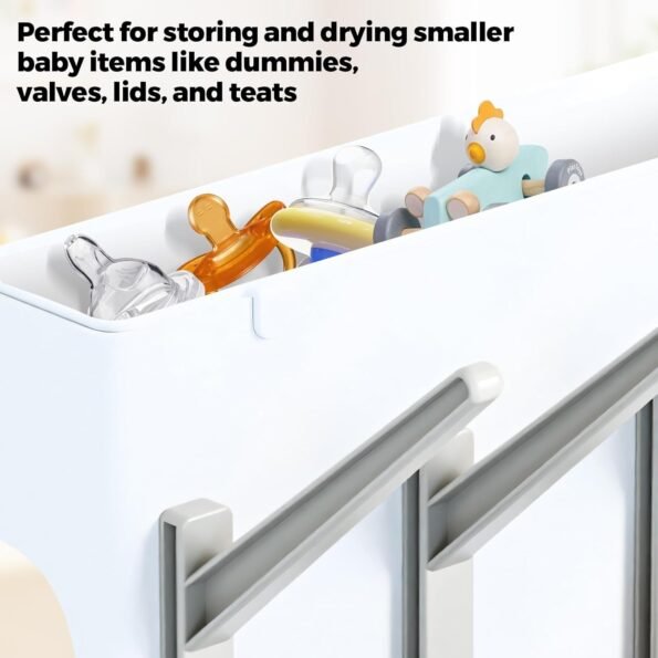 【Compacto, compacto y portátil】: Este escurridor de biberones tiene un diseño delgado y plegable, perfecto para cocinas pequeñas, viajes y padres ocupados. Ligero pero resistente, se integra fácilmente en cualquier hogar y mantiene los artículos esenciales del bebé organizados.