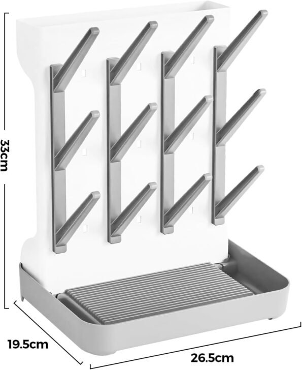GLURIZ Escurridor de Biberones, 12 Puestos Disponibles Estante de Secado de Biberones, Estante de Secado de biberones con Bandeja Extraíble Adecuado para Tetinas y Limpieza de Piezas de Bomba