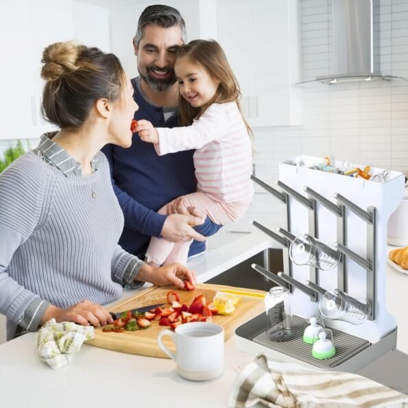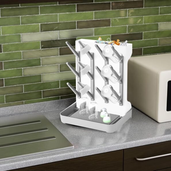 【Gran capacidad, almacenamiento versátil】: Este escurridor de biberones cuenta con múltiples rejillas (12 ganchos) para guardar biberones, tetinas, accesorios para extractores de leche, chupetes y otros accesorios de alimentación. Admite una variedad de marcas y tamaños de biberones, incluyendo biberones de cuello ancho, de cuello estrecho, de vidrio y de plástico, lo que lo convierte en un accesorio imprescindible para padres ocupados.