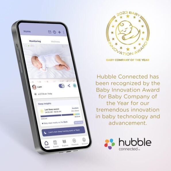 El Nursery Pal Cloud Touch ofrece video de alta calidad y notificaciones en tiempo real, conectando a los padres con sus pequeños mientras ofrece tranquilidad a través de datos perspicaces a través de la aplicación HubbleClub.