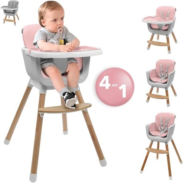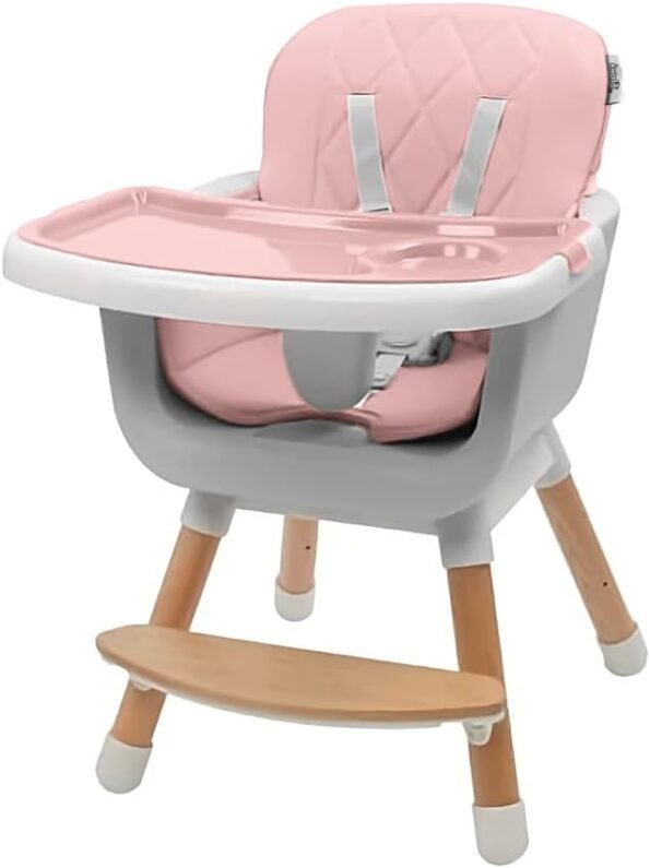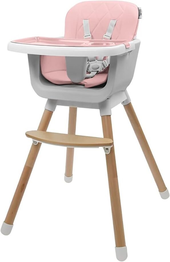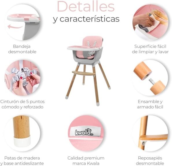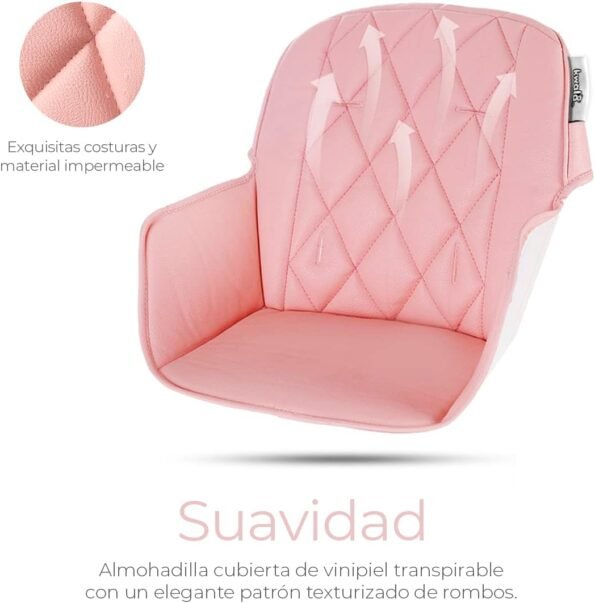 Kwala | Silla Alta para Bebés, Periquera de Altura Ajustable para Alimentar, Silla de Doble Posicion, Charola Desmontable, Cuero Sintetico Facil de Limpiar (Rosa)