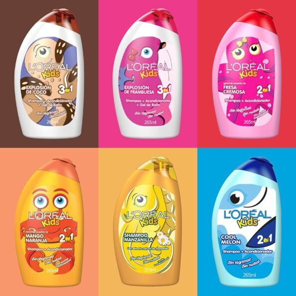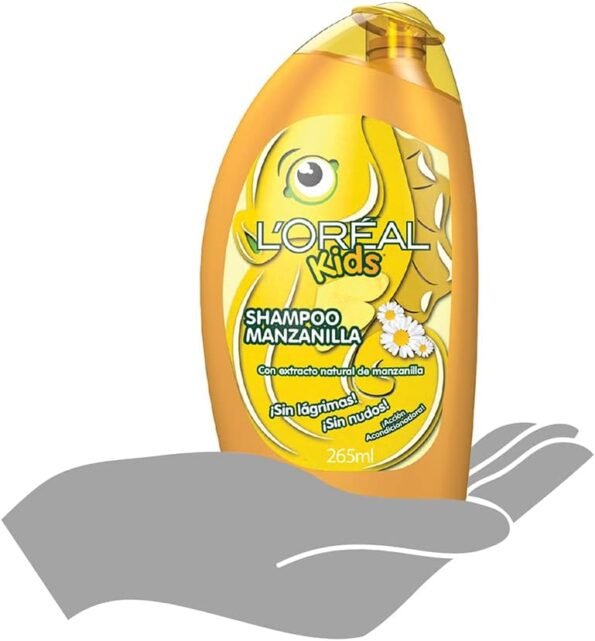 L’Oréal Paris Kids Shampoo: Sin lágrimas, sin nudos para niños. Fórmula especial con extracto de manzanilla ilumina el cabello y resalta su brillo natural. Acción desenredante. Probado oftalmológicamente.