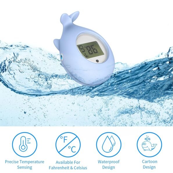 Luqeeg Termómetro de Baño para bebé, Termómetro de Agua para Bañera de Bebé en Forma de Ballena, Termómetro Digital de Temperatura del Agua para Niños Recién