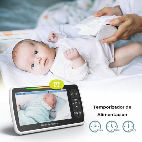 3. El primer baby monitor con bajo potencial eléctrico. ¡Más sorpresas te esperan! (Monitor de bebé de video con pantalla de 5 pulgadas y PTZ – ¡Tu bebé siempre seguro!)