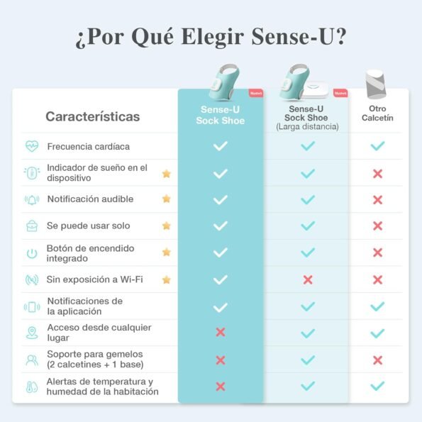 AVISO LEGAL: El Sense-U Calcetín Inteligente NO es un dispositivo médico y no está diseñado para diagnosticar, tratar ni prevenir enfermedades. Solo para niños sanos de hasta 18 meses. Consulte a su médico si su hijo tiene alguna condición médica.