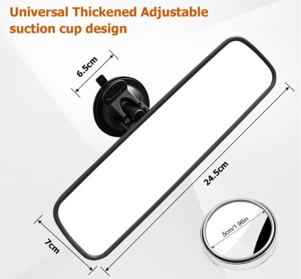 【Universal y fácil de instalar】Este espejo retrovisor universal es perfecto para una amplia gama de vehículos, desde autos compactos hasta camionetas y SUVs. Su sistema de instalación fácil con ventosa ajustable asegura una fijación firme y duradera en el parabrisas. No importa el modelo de tu coche, este retrovisor se ajusta sin problemas, ofreciendo un extra en visibilidad y seguridad para ti y tus pasajeros.
