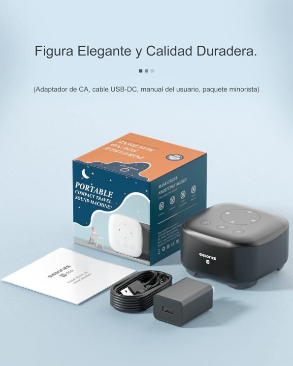 Máquina de ruido blanco S3-ECO.Adaptador de CA y cable de alimentación USB.Manual de usuario.