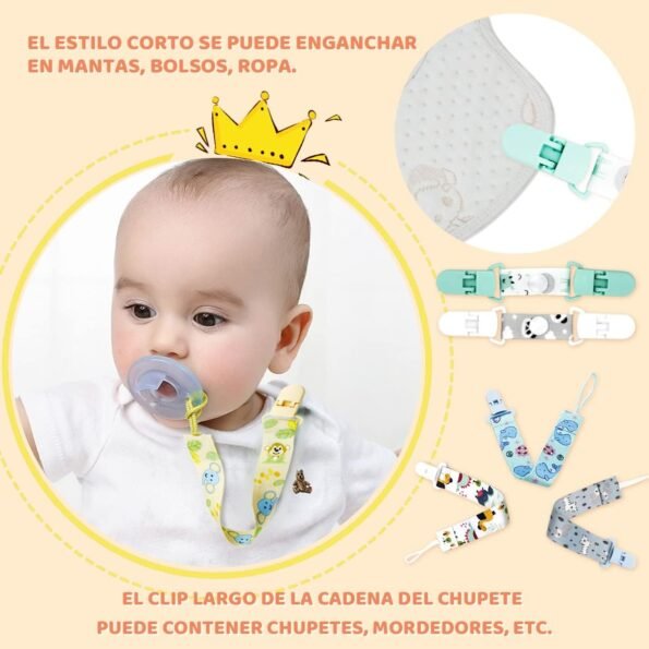 VIDA4U 6 Piezas Clips de Chupete Para Niños y Niñas, Correas Universales y Porta Chupete para Chupón, Mordedor, Babero y Juguetes, Regalo para Recién Nacidos en Baby Shower y Cumpleaños