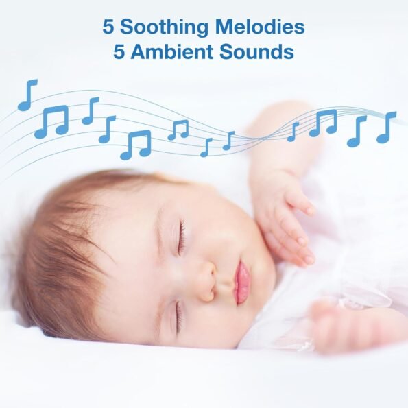 Sonidos calmantes y canciones de cuna: calma suavemente a tu bebé para que duerma con 5 melodías calmantes y 4 juegos de sonido ambiental, incluyendo ruido blanco y una corriente goteante.